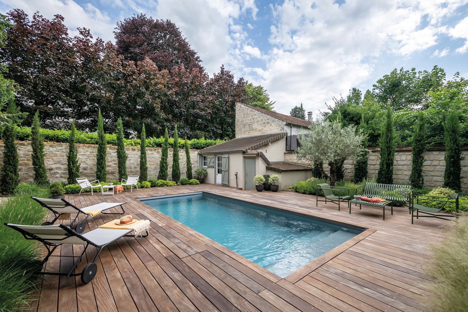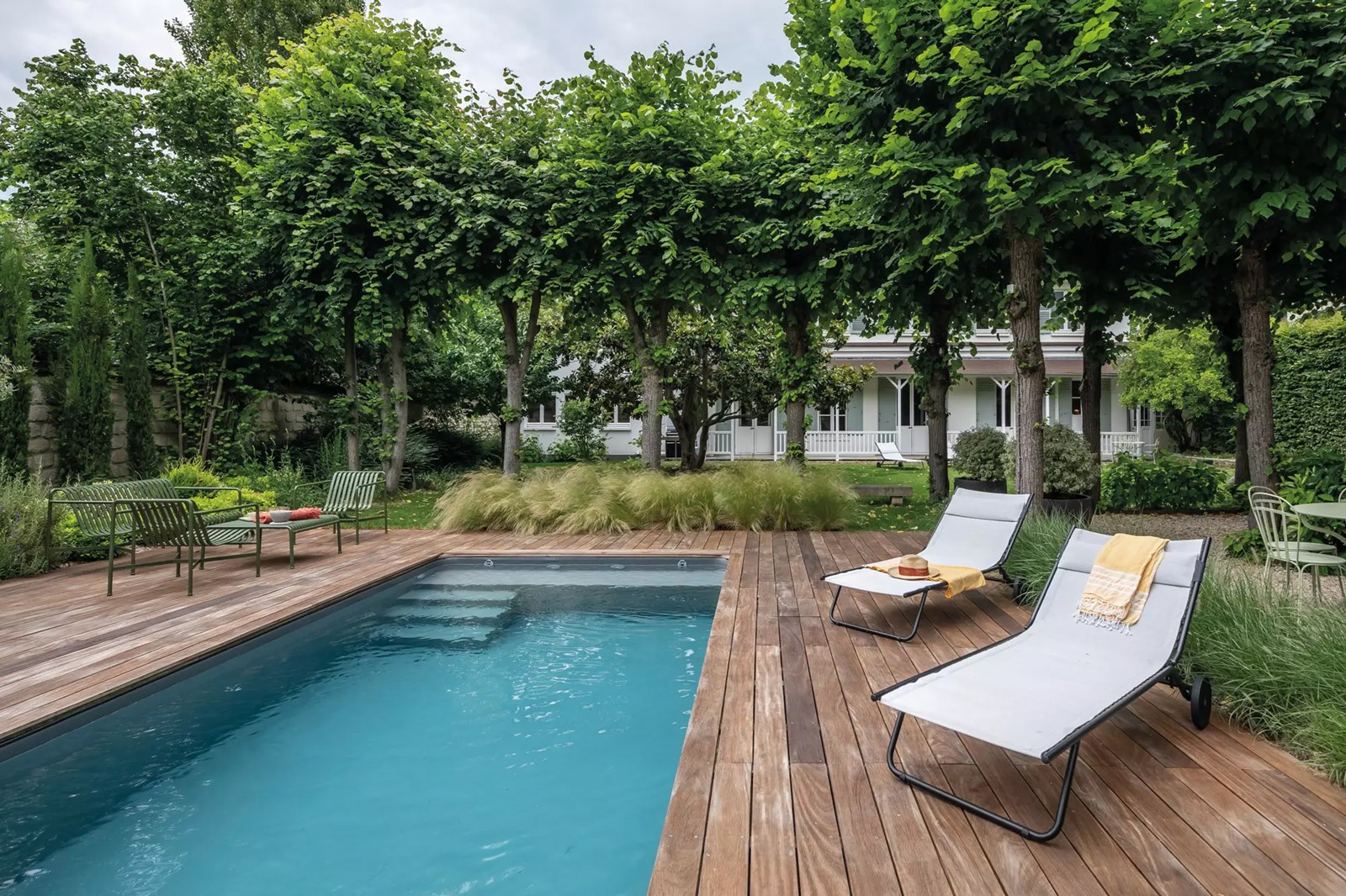 Dès le départ, l’approche consistait à limiter les modifications de l’existant en concevant une piscine de petite dimension (7 x 3 m) et en planifiant un aménagement périphérique minimaliste. “L'idée était de créer un espace aquatique sans empiéter sur l'intégrité du sous-bois et sans changer le style architectural du jardin”, précise le paysagiste-pisciniste.