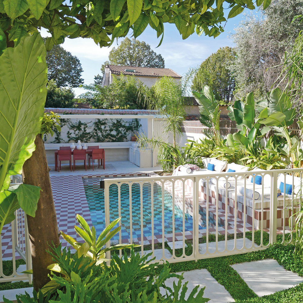Dans cet espace de 140 m², il fallait composer avec une piscine pas tout à fait finie, des végétaux en plein essor et un cabanon à l’abandon. Comment transformer tout cela en cadre idyllique ? Voici la recette : choisir les végétaux à conserver ; structurer le jardin, de petite taille, en trois espaces pour des usages distincts ; respecter les règles d’urbanisme et régler les problématiques de voisinage ; ajouter une touche esthétique forte pour obtenir un cocon urbain. “Nos clients nous ont fait confiance pour revoir entièrement cet espace”, introduit Claire Delahaye co-fondatrice de Slowgarden.